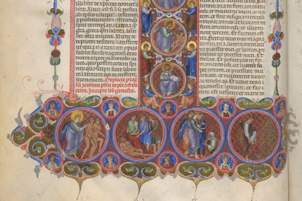Forse proprio in questa fase, quando lo stesso Dante si trovò a Bologna, potrebbe situarsi l’attività dell’eugubino Oderisi la cui area figurativa potrebbe avvicinarsi a opere come la Abbey Bible del Paul Getty Museum di Los Angeles o la Bibbia lat. 20 della Biblioteca Apostolica Vaticana (fig. 55; Medica, 2000, p. 123): si tratta di manoscritti di notevole qualità, dai colori pastosi, caratterizzati inoltre dall’evidenza pittorica delle figure che si stagliano solenni sui fondali richiamando anche stilemi desunti dalla tradizione ellenistico-bizantina.